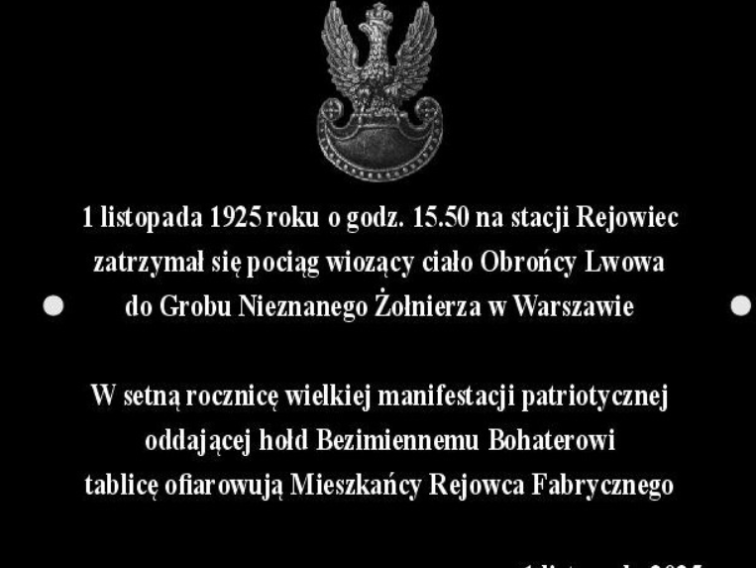 Dnia 2 listopada w Rejowcu Fabrycznym odbyła się wyjątkowa uroczystość – odsłonięcie i poświęcenie tablicy upamiętniającej 100 rocznicę przejazdu pociągu wiozącego ciało Obrońcy Lwowa do Grobu Nieznanego Żołnierza w Warszawie.